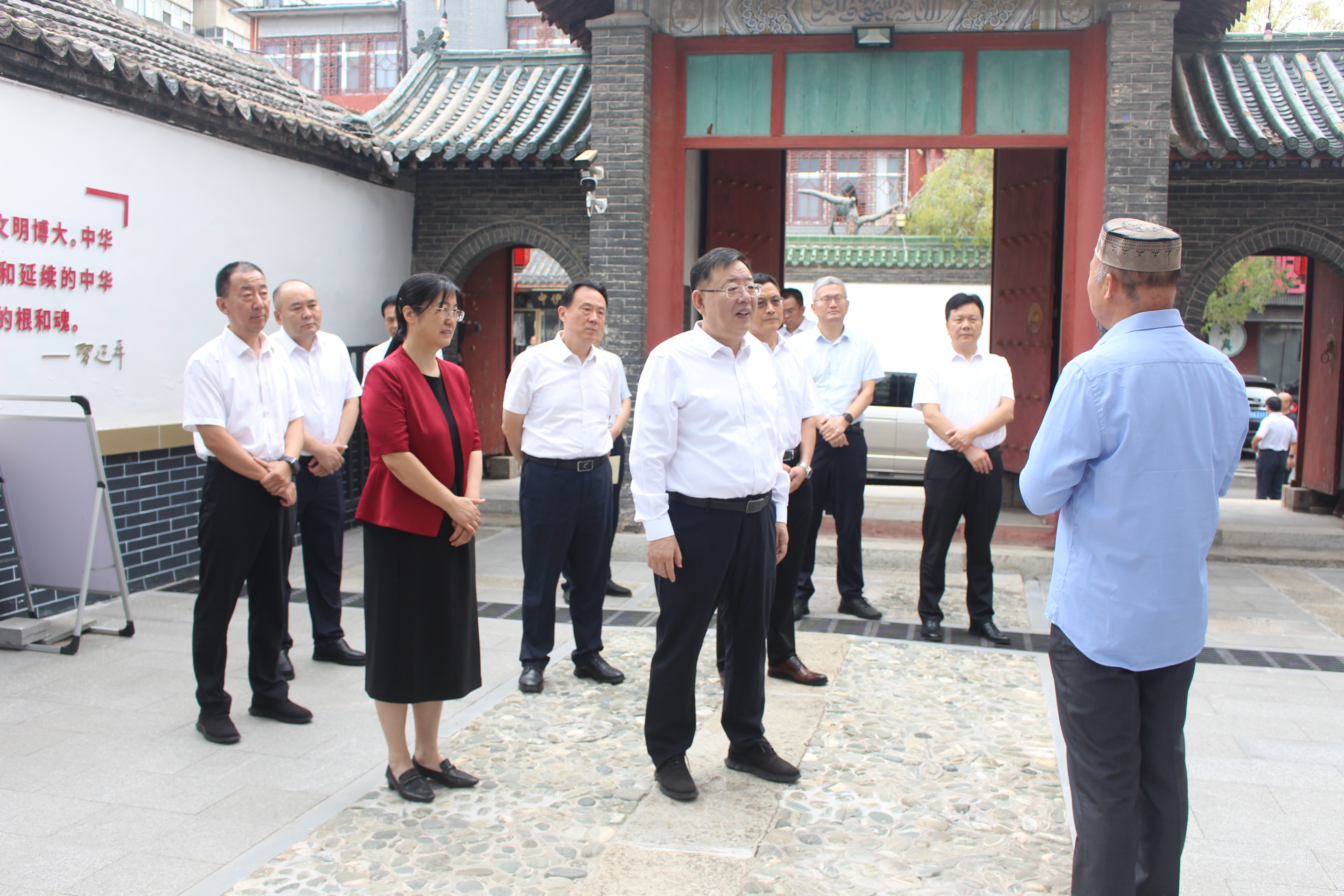 9月11日,泰安市委书记杨洪涛到泰城清真寺调研伊斯兰教工作,泰安市伊斯兰教协会热情接待。调研中,杨洪涛书记详细了解了泰城清真寺在宗教活动场所规范化管理、推进伊斯兰教中国化等方面的具体实践与经验做法。泰安市领导成丽、张颖及泰山区委书记张培峰参加活动。