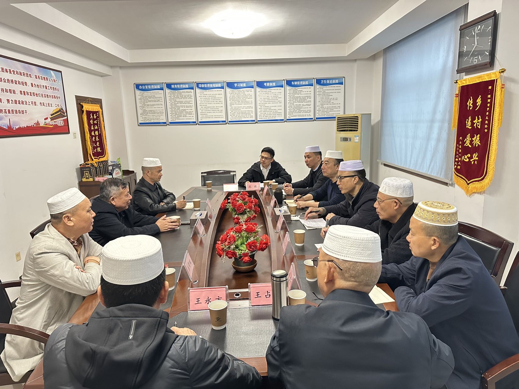 其间,与湖南省伊斯兰教协会、邵阳市伊斯兰教协会、常德市伊斯兰教协会、岳阳市伊斯兰教协会交流座谈,就系统推进我国宗教中国化、践行社会主义核心价值观、教职人员培养、讲新“卧尔兹”、监事会作用发挥等开展互学互鉴。