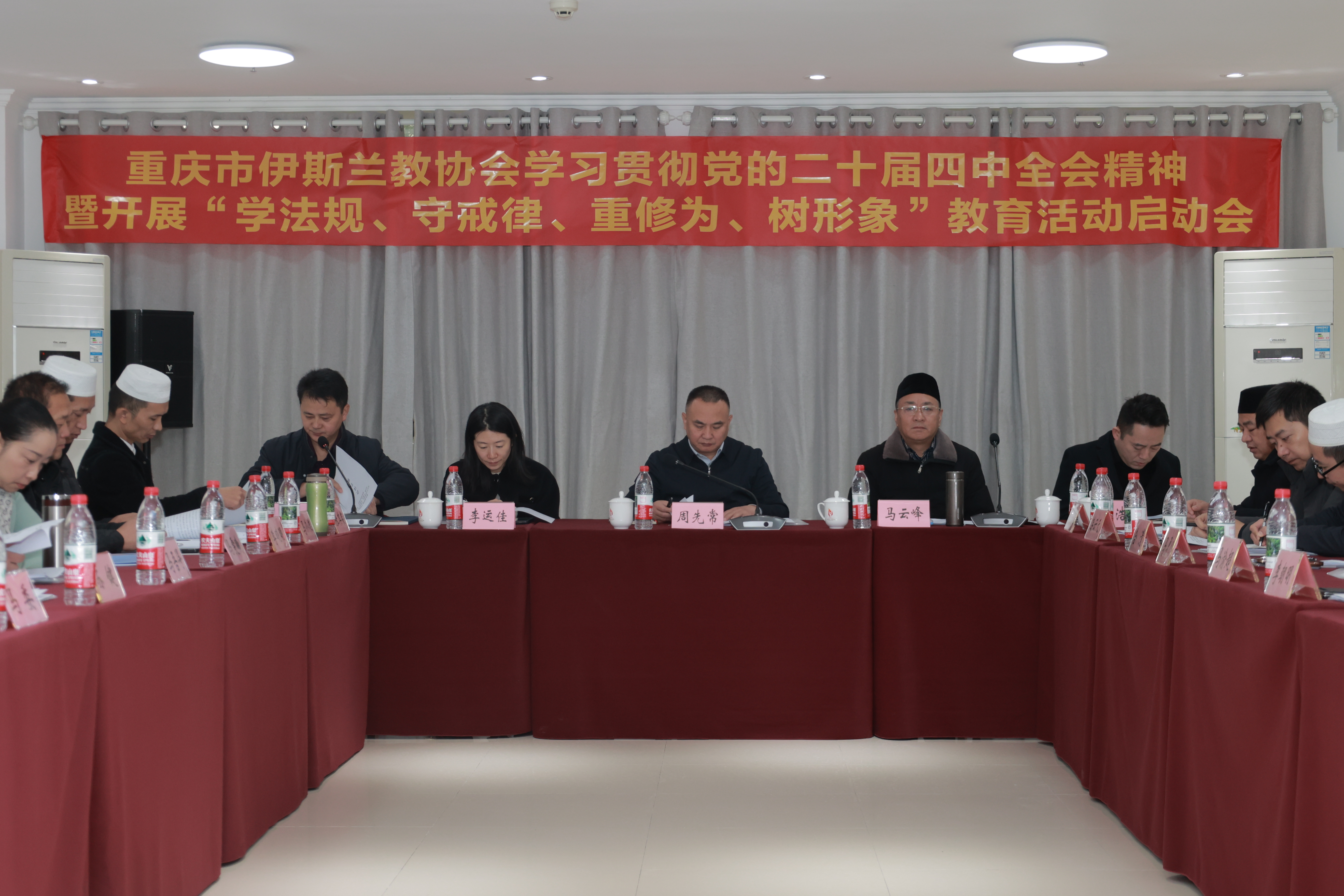 11月19日,重庆市伊斯兰教协会召开深入学习贯彻党的二十届四中全会精神暨“学法规、守戒律、重修为、树形象”教育活动启动会。市民族宗教委党组成员、副主任周先常和重庆市伊斯兰教协会会长马云峰出席。市委统战部、市民族宗教委相关负责人和全市伊斯兰教界人士参加。