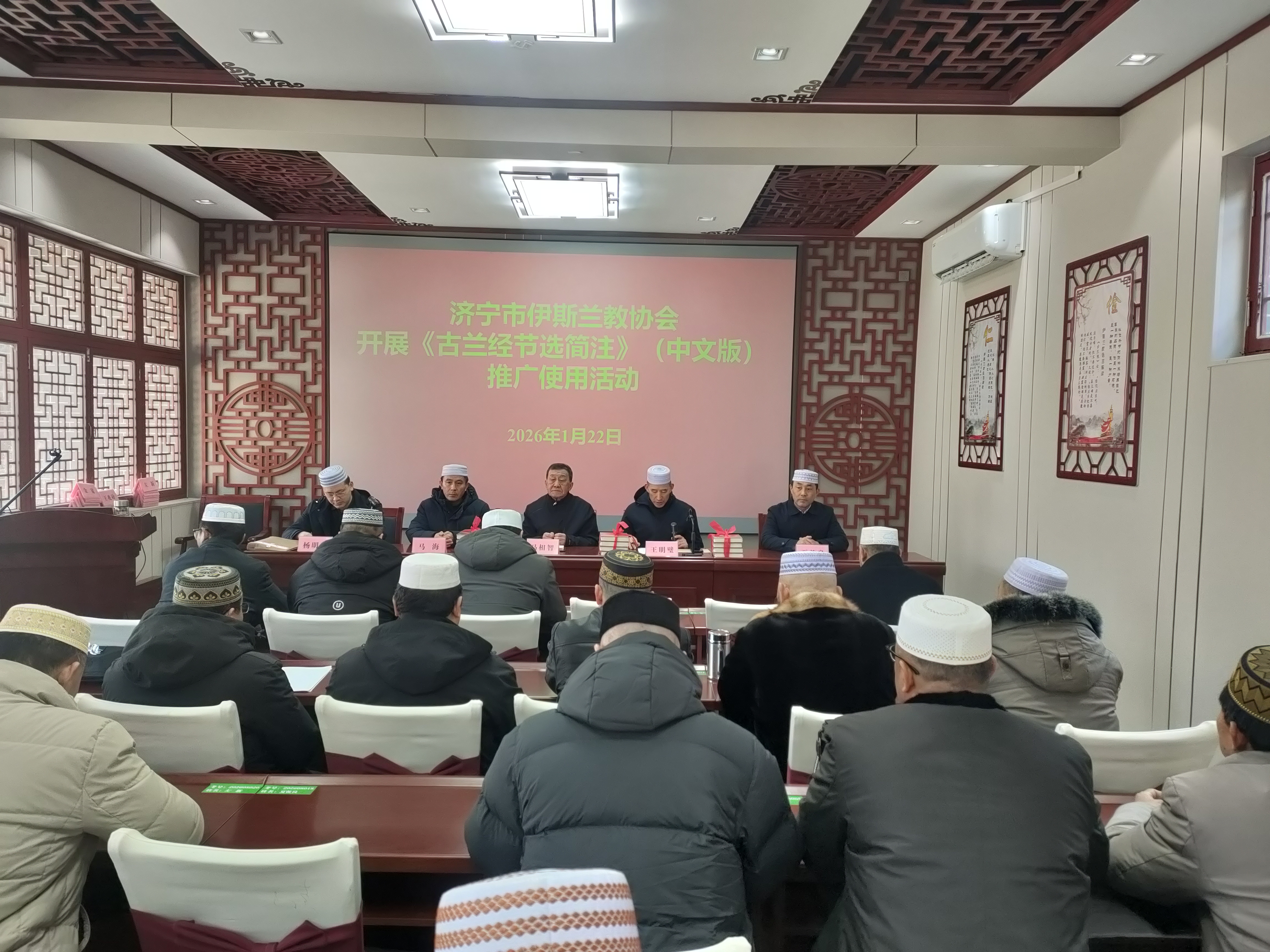 1月22日,济宁市伊斯兰教协会开展《古兰经节选简注》(中文版)推广使用专题活动,市伊斯兰教协会理事、监事会成员及全市阿訇40余人参加。