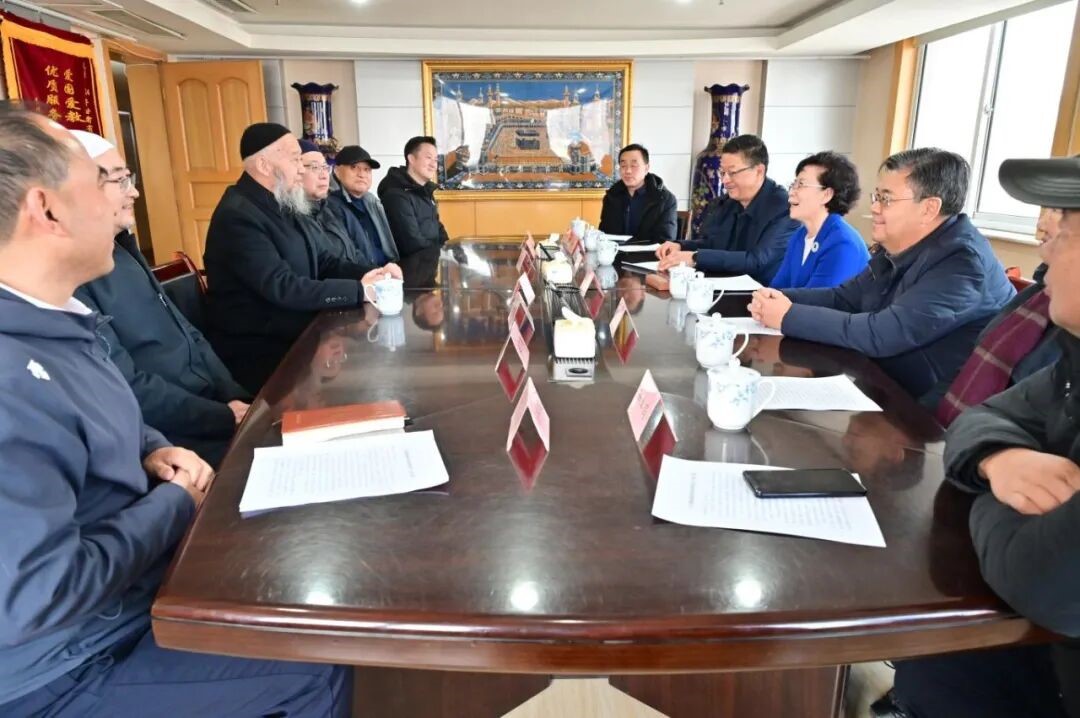 2月2日,甘肃省伊斯兰教协会会长马文云等热情接待前来走访慰问的甘肃省政协党组副书记、副主席何伟,省政协民宗委主任冯文戈一行。