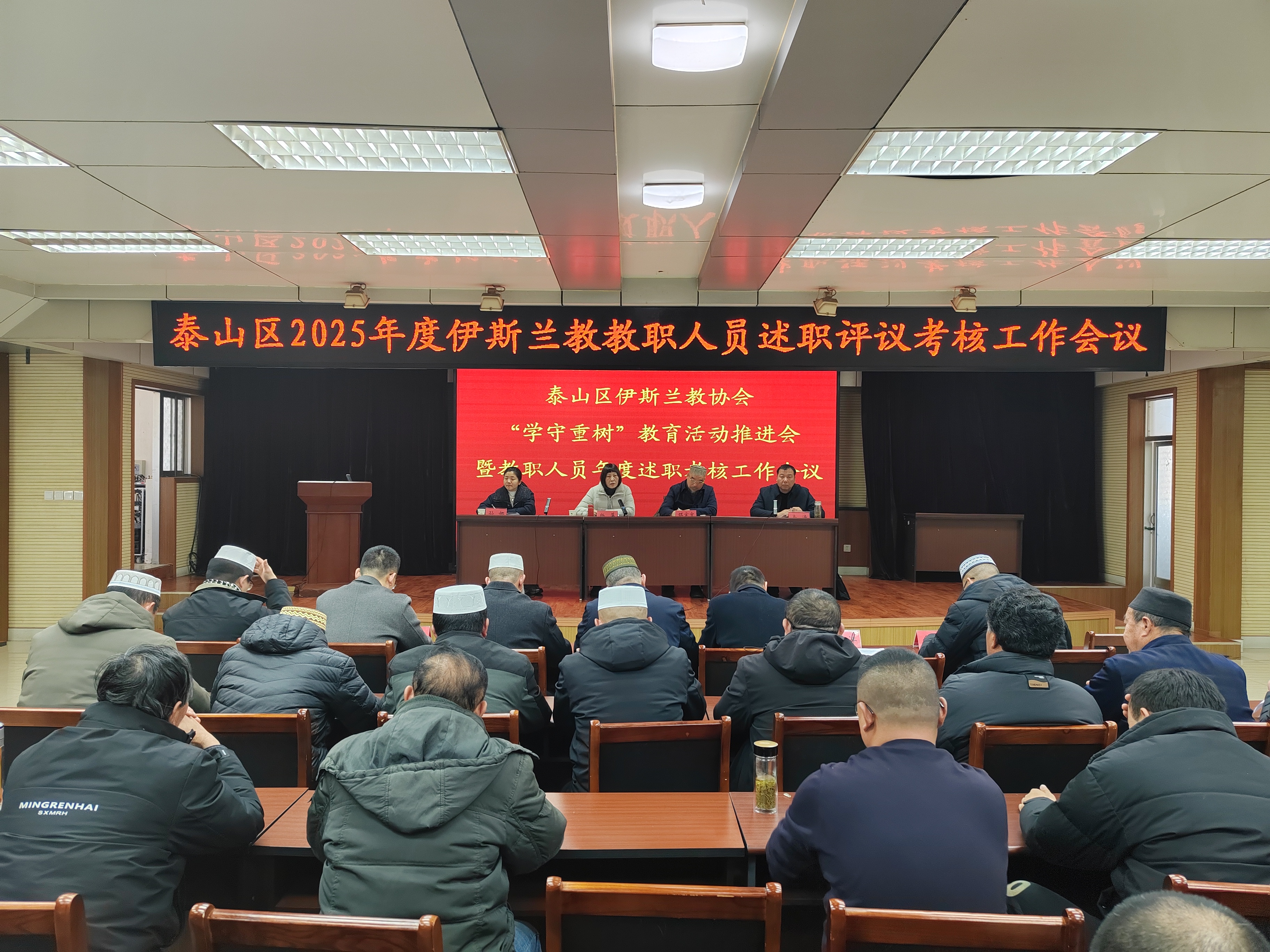 3月10日,泰安市泰山区伊斯兰教协会召开“学法规、守戒律、重修为、树形象”教育活动推进会。区委统战部、民宗局负责同志出席会议并讲话。区伊斯兰教协会班子成员和各清真寺民主管理委员会主任、教职人员共30余人参加会议。